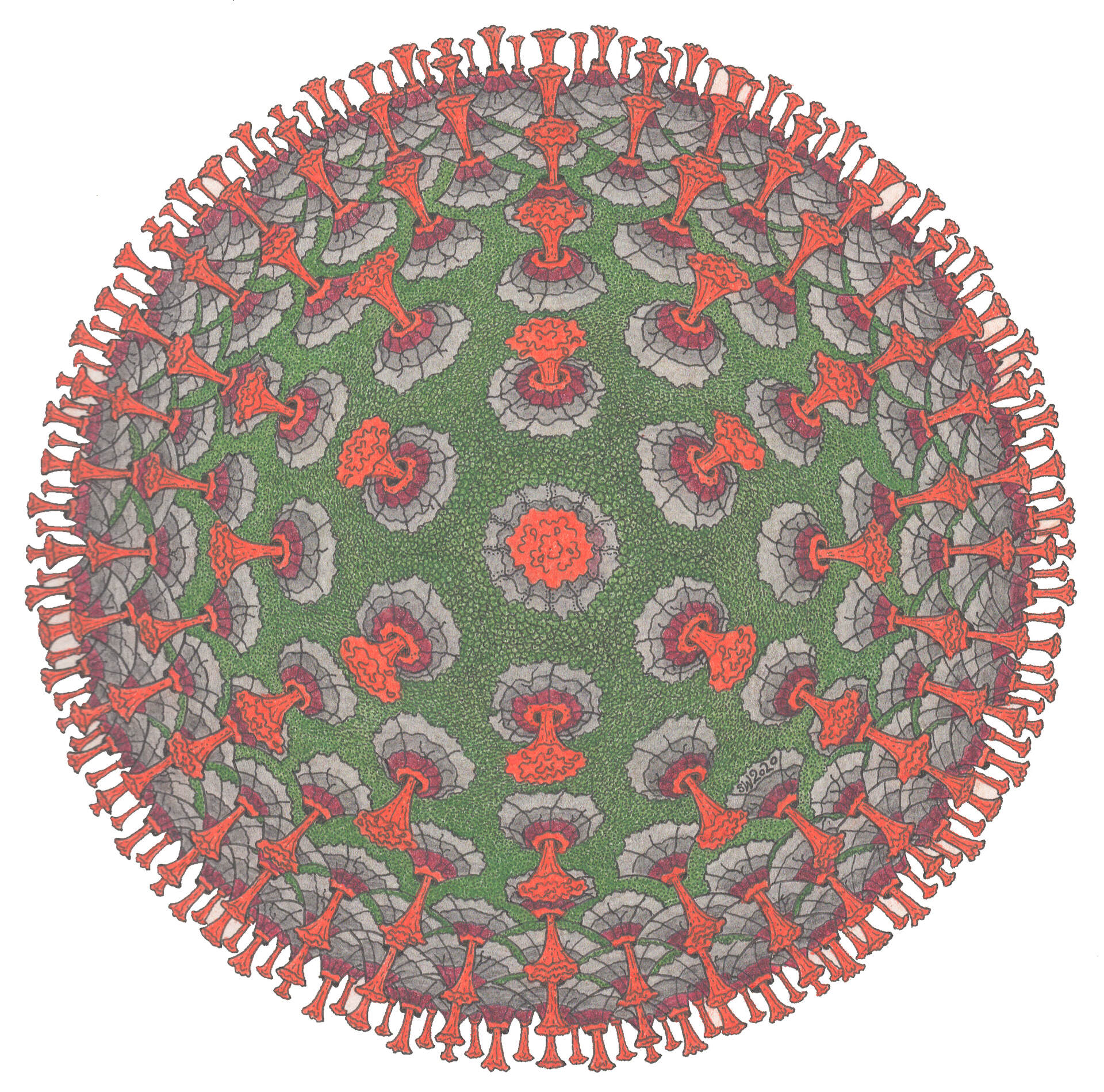 When I drew this mandala in May, 2020, I actually titled it, Coronavirus in Nicaragua, because at the time, scared Nicaraguans were illegally crossing Costa Rica's northern border, their own government failing to inform or support their people during the early onslaught of the pandemic. I was living in Puerto Viejo in the south, but it marked the first time that the number of cases started rising sharply in Costa Rica since the pandemic began, and that came with some uncertainty.