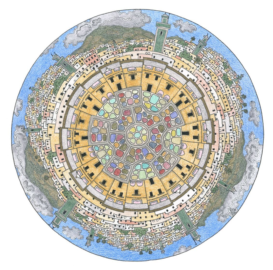 We stayed in a riad (a small hotel with an inner courtyard), which was a quiet place off of the alleyways, away from the vendors and bordering chaos. One morning, we did a short tour with a one-armed gentleman, that eventually led us into a leather tannery with its enormous open-air workshop out the back. From a balcony we were able to look out over the enormous vats of coloured dyes and washes, the pelts hangings out to dry... and the spread of the city beyond, its Mosque towers protruding well above the sprawl.