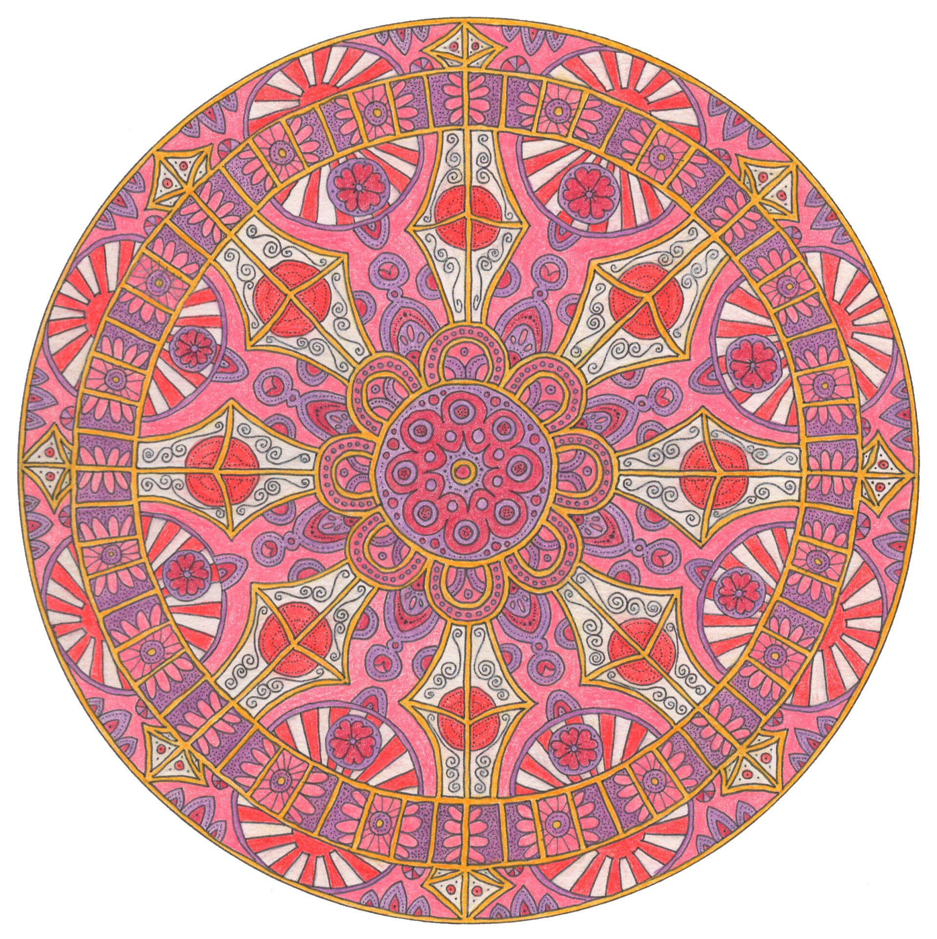 I drew this mandala one baking afternoon in the middle of the 88 Temple Pilgrimage of Shikoku. All in all it took me 45 days to finish the entire 1150km circumnavigation of the island, so that middle stretch was quite laborious at times, and this particular day was also too hot! I got off the trail early in the afternoon, but not as soon as I'd wanted. A couple of the ryokans I popped in on were not open so I was pretty exhausted by the time one took me in. It was a very kitsch room with a saggy bed instead of a futon, nothing much traditionally Japanese about it, and it was too expensive... but beggars can't be choosers.