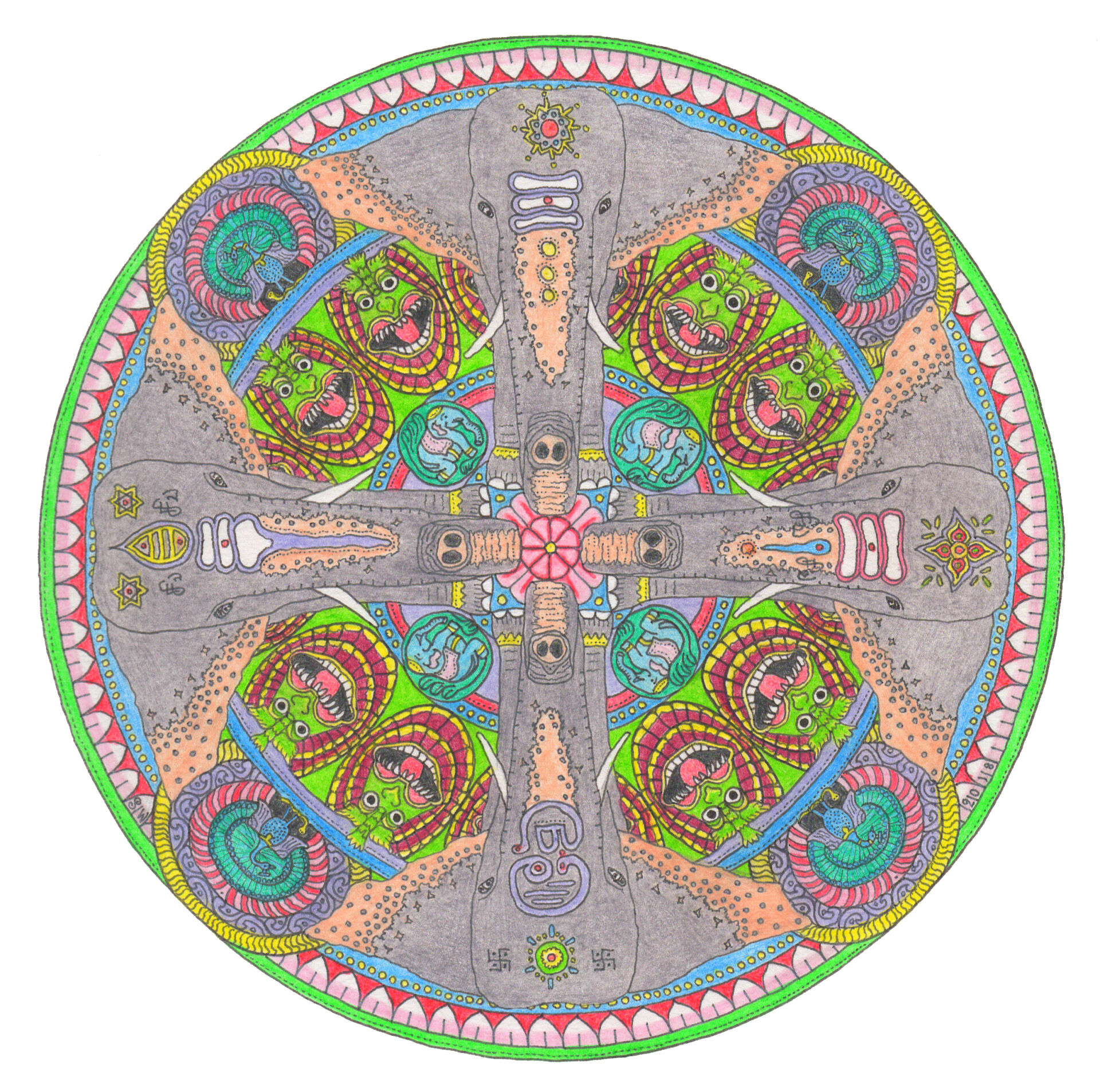 I know, I know, it's a horrible green, right? It's too bright and distracting. But these little green monsters were a part of the ornamentation on the facade of the Hindu Temple, Manakula Vinayagar in Pondicherry, amongst many other colourful things, like the peacocks. What I like about the little green monsters is, that they lead the eye so much, that half of the people who look at this drawing don't even see the 4 elephants that take up half of the picture. But I concede, it's not one of my best.