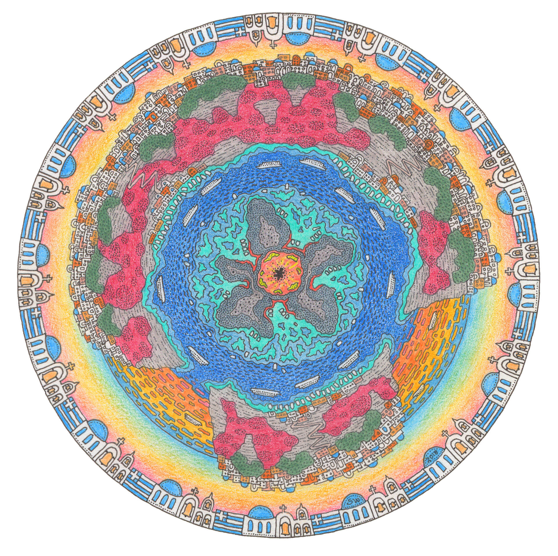 Oh my goodness, Santorini. An old, sunken volcano captured by the Aegean Sea, only its upper rim a circular, habitable ridge… with a much younger volcano as an island in the middle. Massive white cruise ships sitting on the water within the caldera. Donkey's hauling goods and luggage up the steep stone stairwells from the water's edge to the tops of the ridges. Whitewashed and blue-domed buildings huddling on the upper ridge, maximising the view, becoming a part of the view. A fantastic place to watch the sunset, to share a romance, to be married... or to spend some $'s!