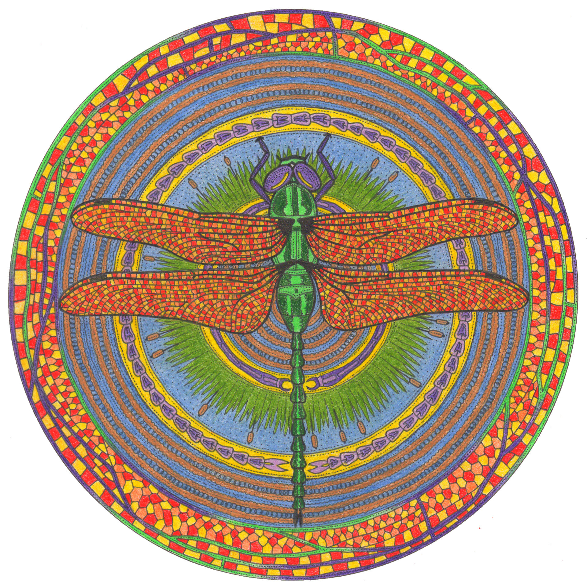 This drawing is not of any one particular dragonfly, it's simply a tribute drawing that I didn't really plan, it just kinda came out as it came out. The dragonfly's orientation within the circle reminded me of DaVinci's 'Vitruvian Man', and so I pinched the title!